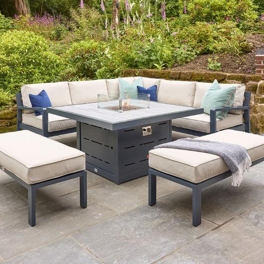 HEX Living Tutbury Fire Pit Table with Corner Sofa and Two Large Benches