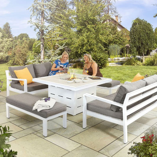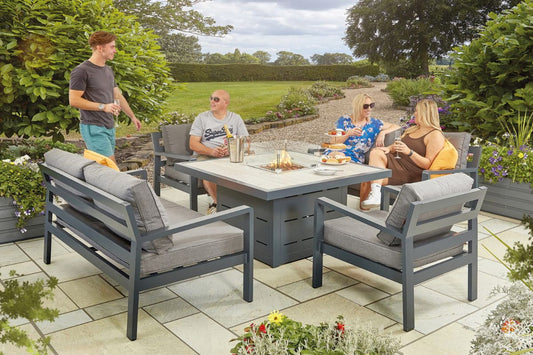 HEX Living Tutbury Fire Pit Table Set with Two Sofas and Two Benches