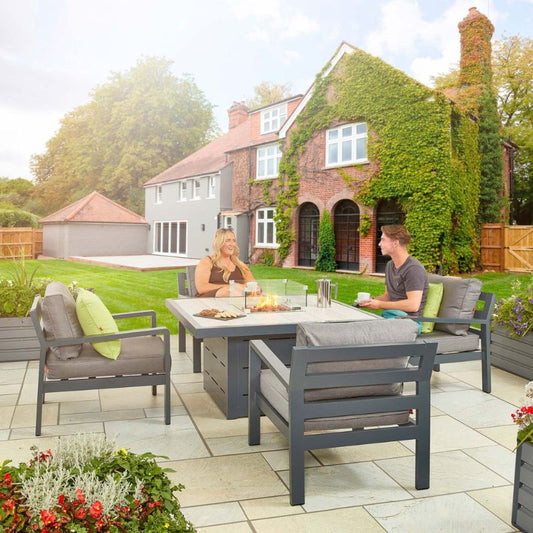 HEX Living Tutbury Fire Pit Table Set with Two Sofas and Two Chairs