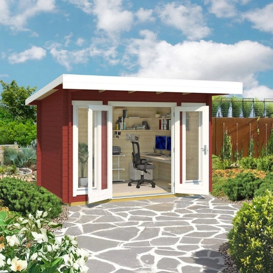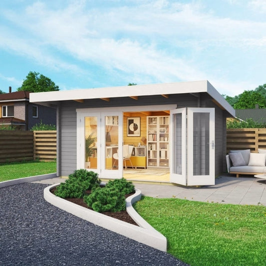 Lasita Sussex 1 Garden Log Cabin 12.7ft X 9.8ft 44mm thickness with double bifold door