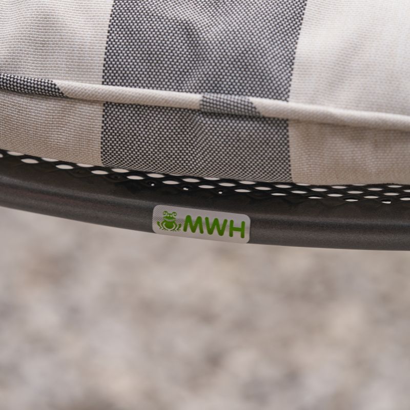 Comfort Included: Comes with stylish grey-and-white striped polyester cushions built for durability and outdoor use.