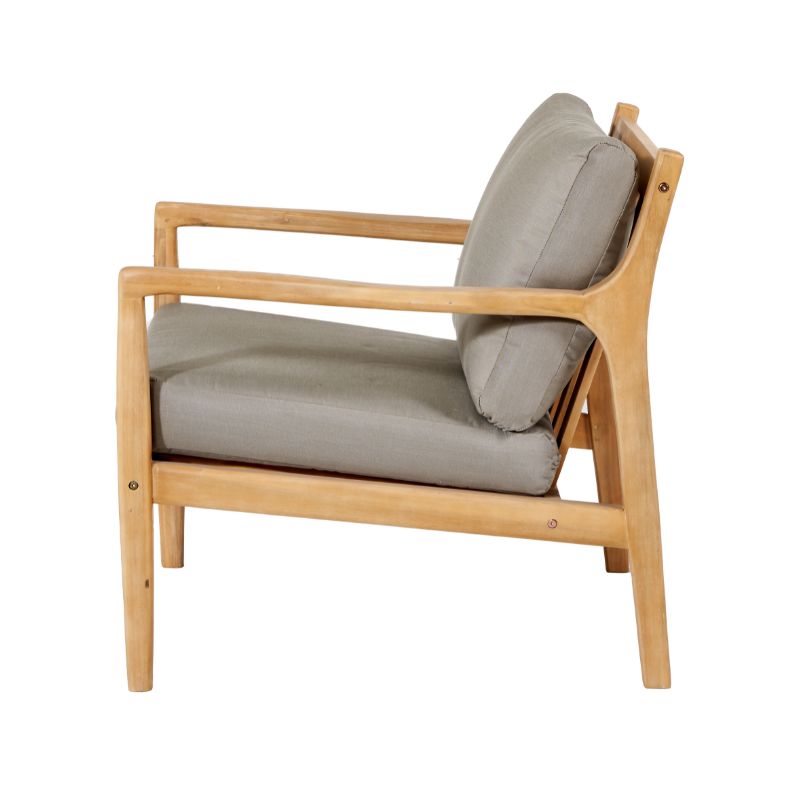 Neutral & Sophisticated Upholstery: Cushions in light linen taupe offer a refined, calming palette that fits many outdoor styles.