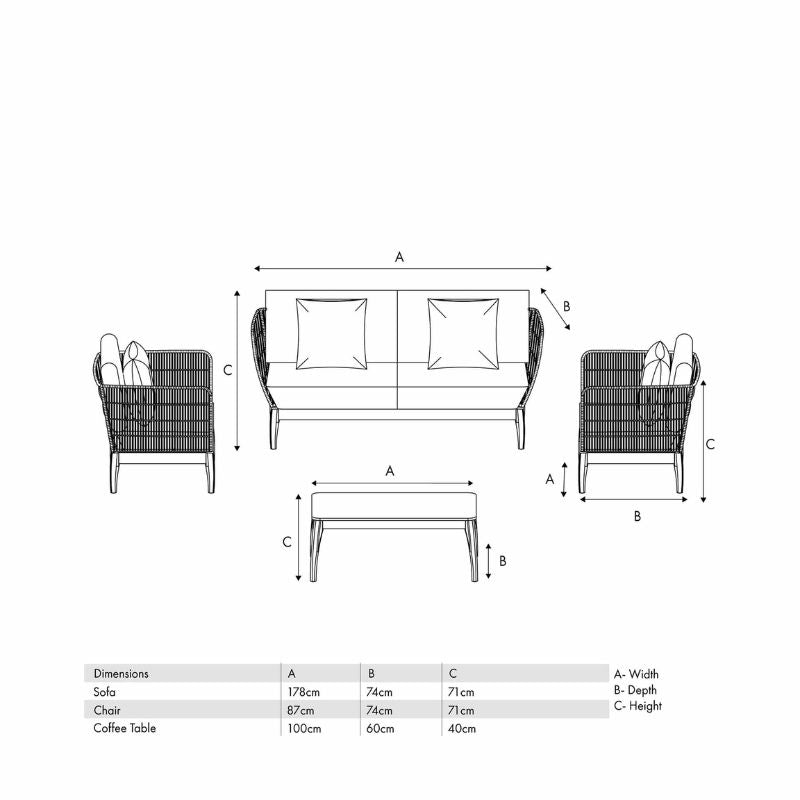 Complete Lounge Experience: Includes a sofa, armchairs, and a coffee table — everything you need for elegant outdoor lounging.