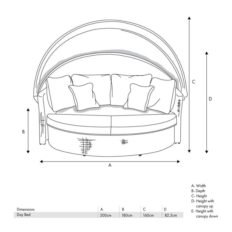 Durable and Weatherproof: The day bed is constructed from a 6mm gauge, half-round, Synthetic Rattan Weave in Slate Grey with a powder-coated aluminum frame, making it durable, weatherproof, and UV protected.