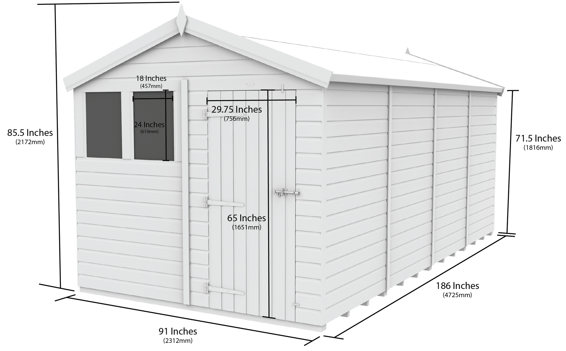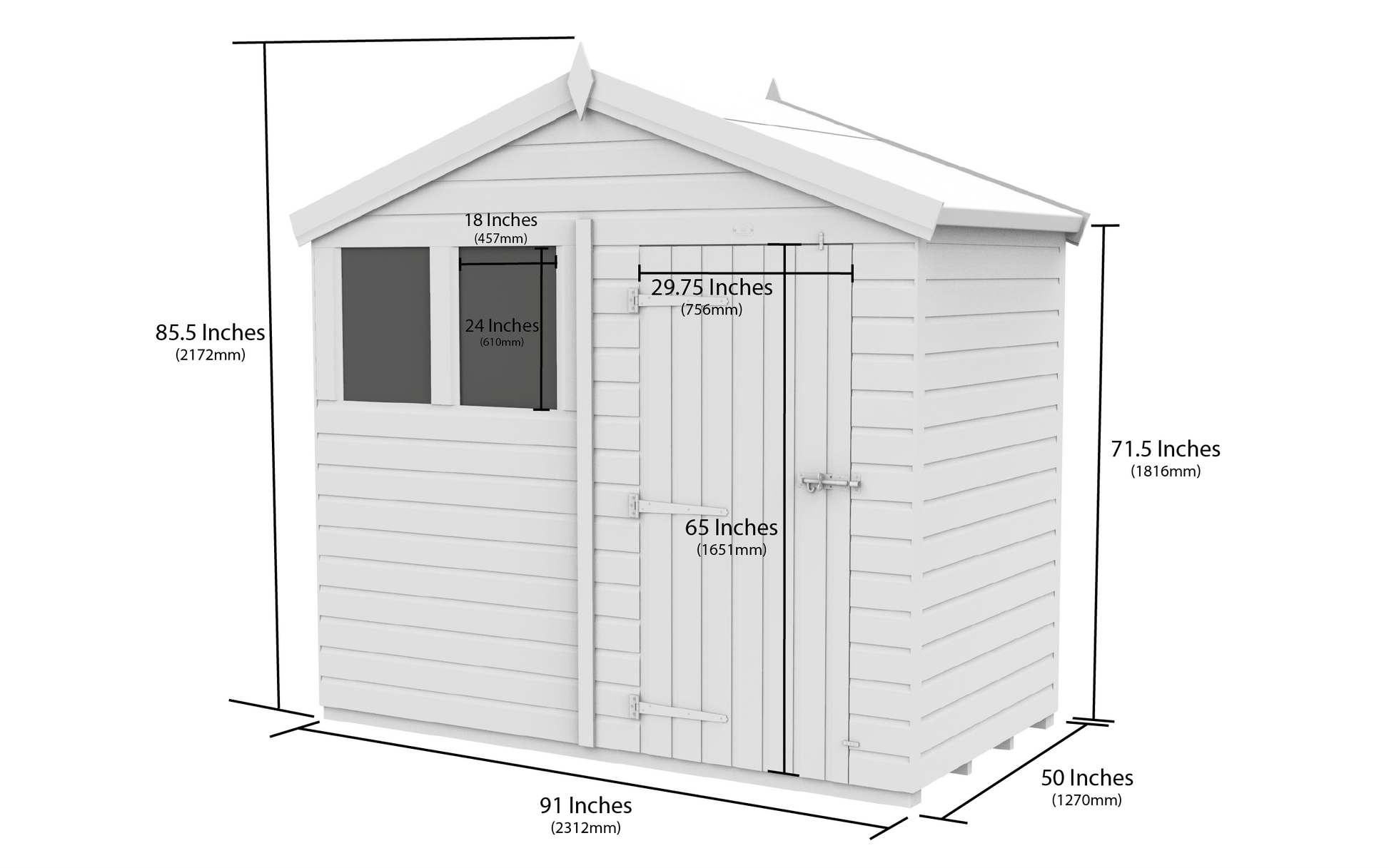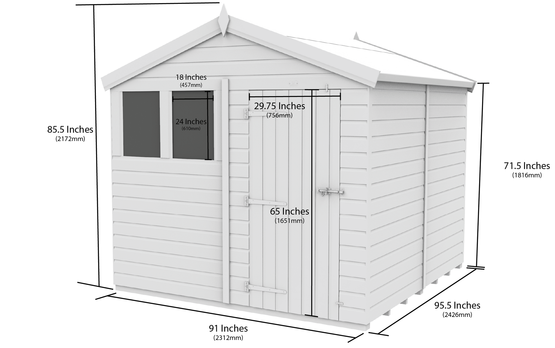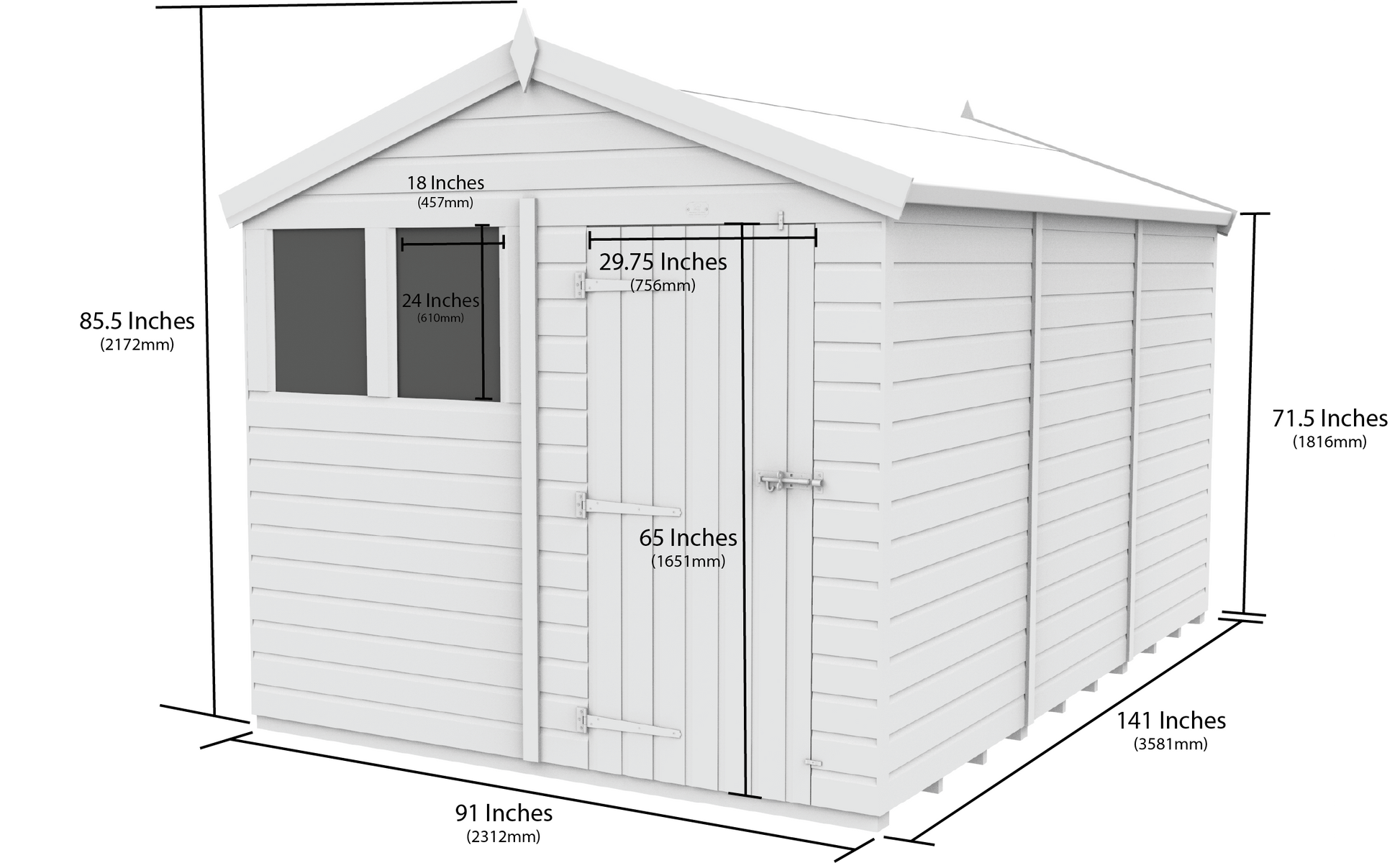 All our sheds come in metric sizes, please see the dimensions diagram for further details.