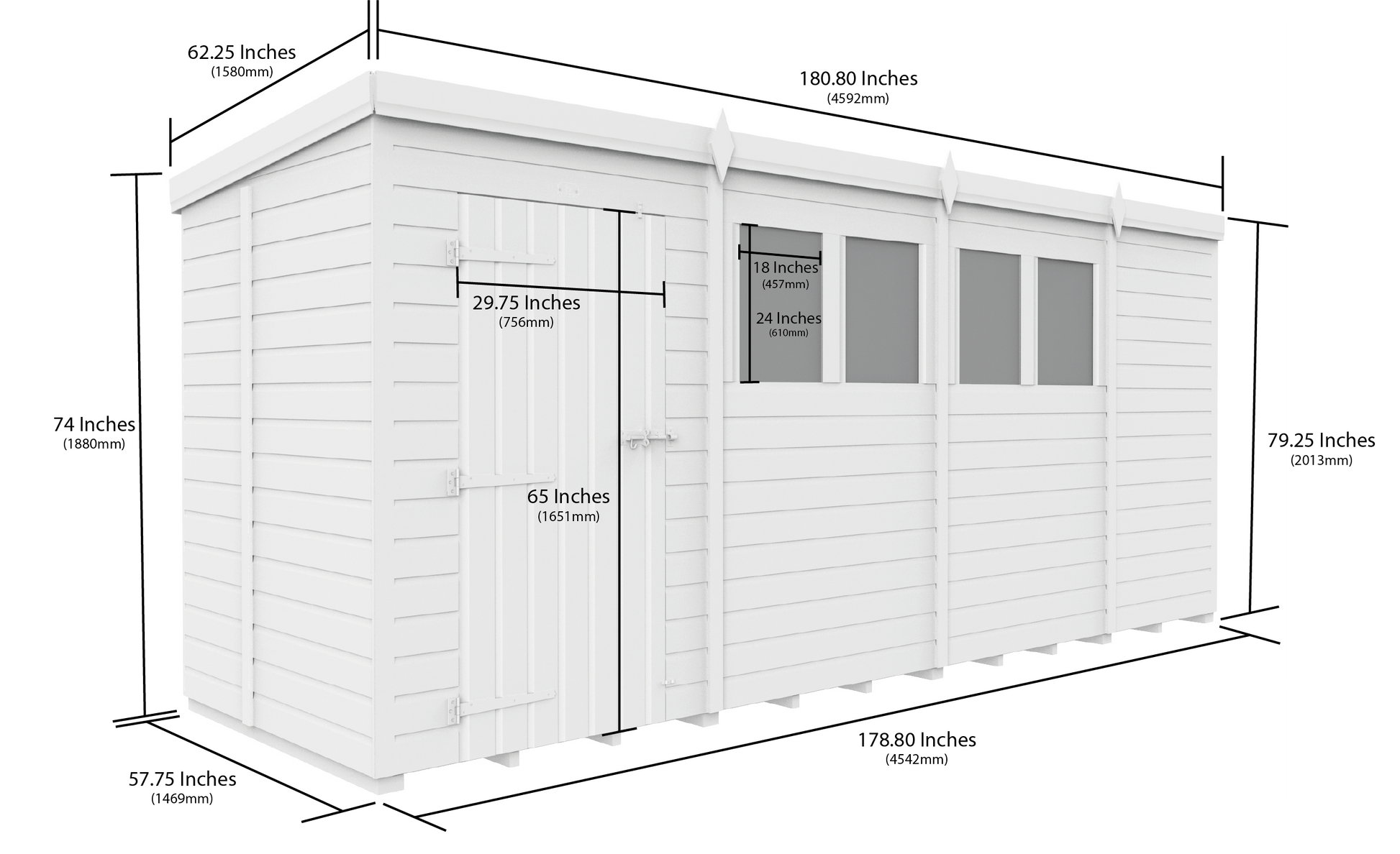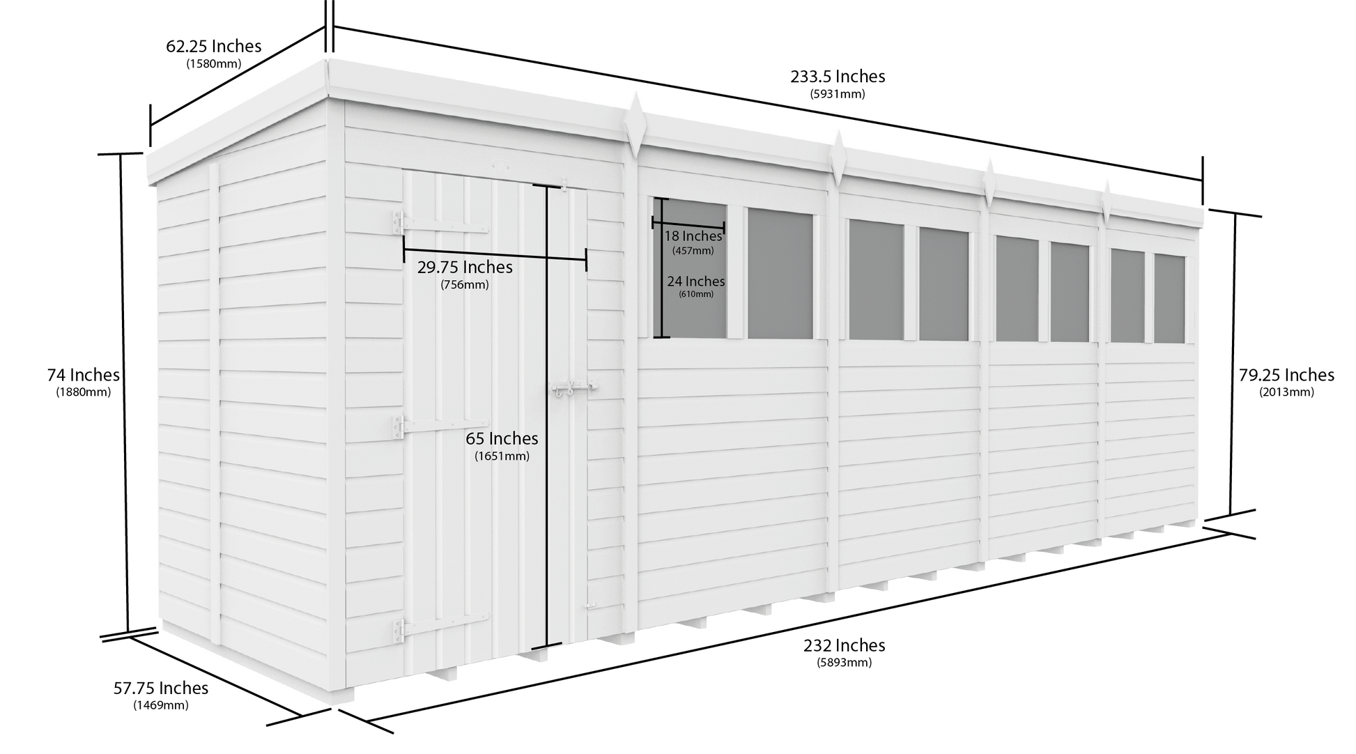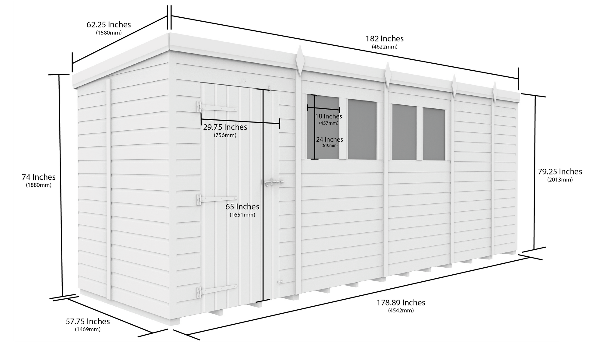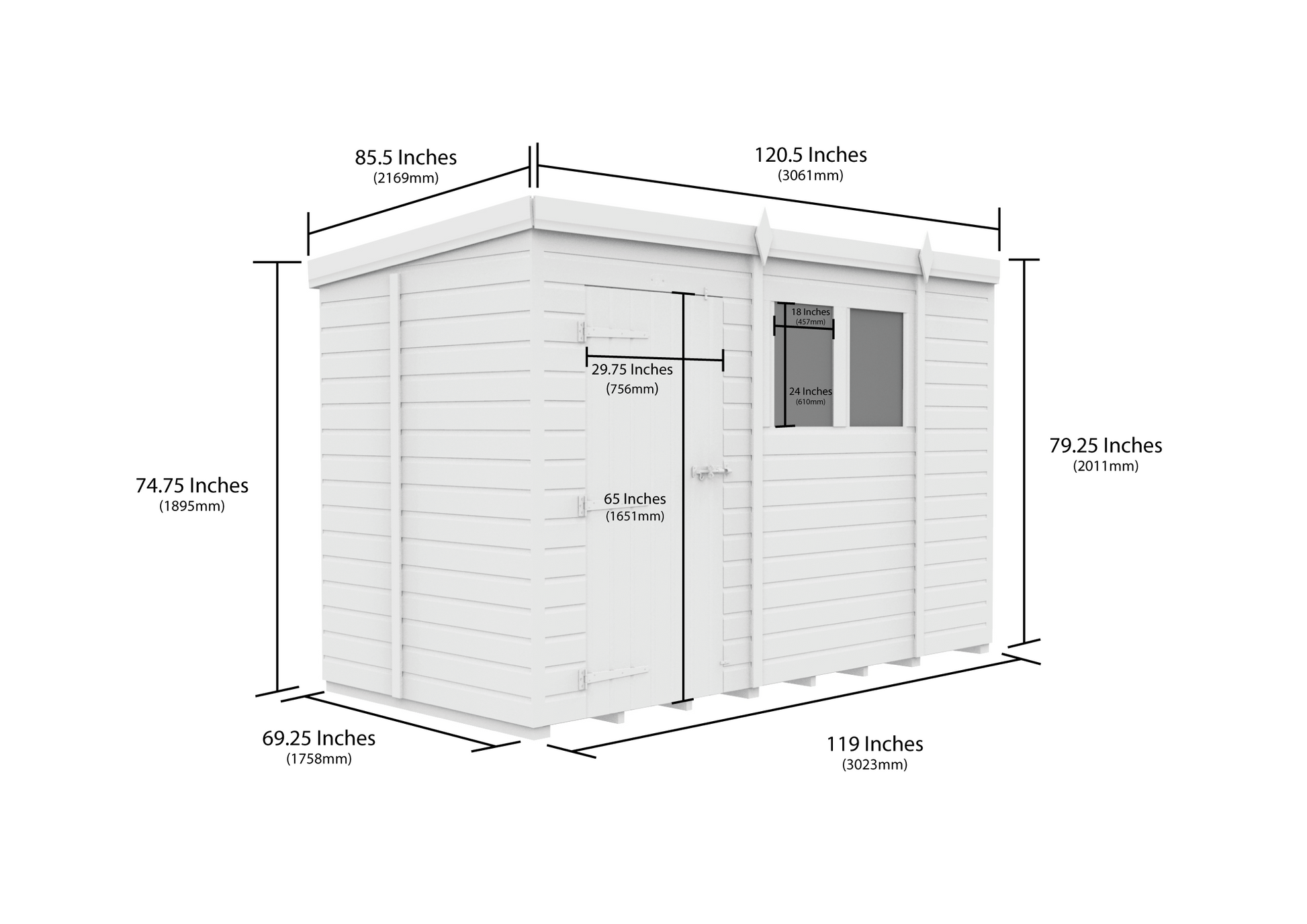 All our sheds come in metric sizes, please see the dimensions diagram for further details.