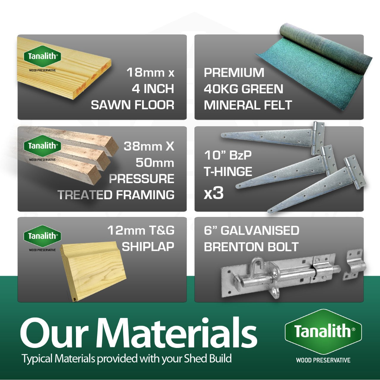 - All our sheds are manufactured with pressure treated tanalised timber on the outside of the building to help against rotting, fungal and insect attack