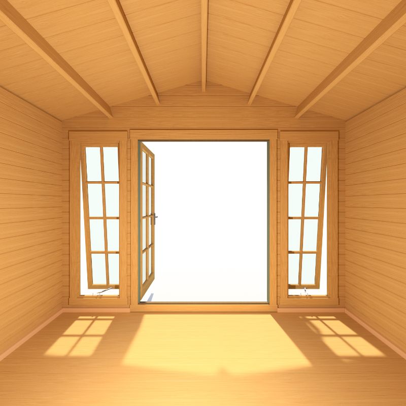 Elevate your garden with the Shire 12x10 Epping Log Cabin, a versatile and elegant outdoor space combining traditional charm with modern comfort. Crafted from high-grade, FSC® certified Northern European pine with robust 28mm interlocking logs, it ensures strength, stability, and durability. The cabin boasts an almost fully glazed front, two full-length side windows, and wide-opening double doors with toughened glass and a mortice lock, flooding the interior with natural light and offering panoramic garden views. Delivered flat-packed with comprehensive instructions for self-assembly, it comes with pressure-treated floor bearers and is backed by a 10-year anti-rot guarantee and a 1-year manufacturer's warranty, promising enduring enjoyment and a beautiful addition to your outdoor living space.