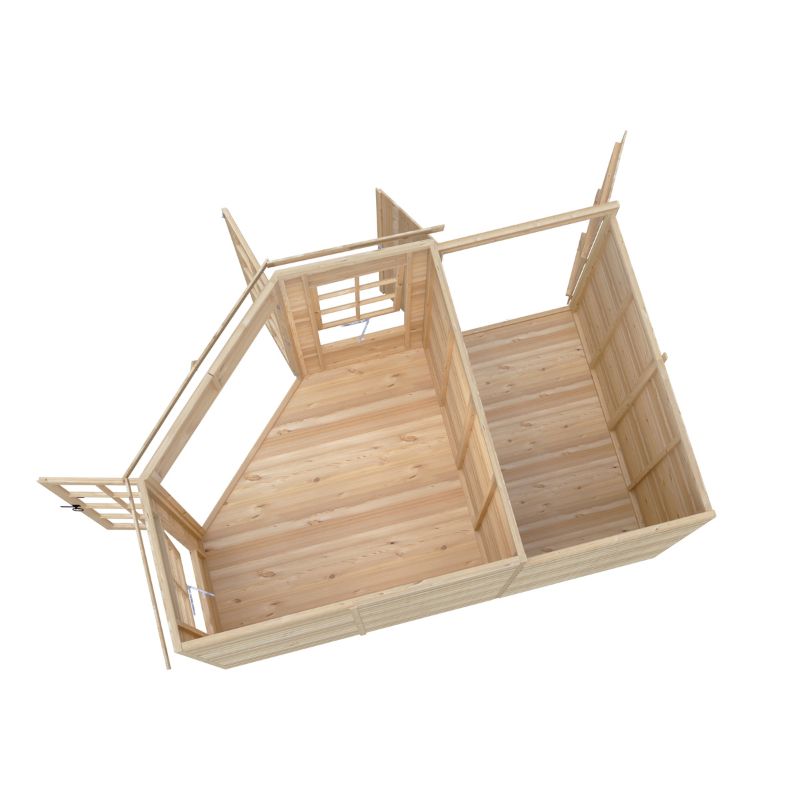 Elevate your garden with the Shire Hampton With Side Shed 7x11 Corner Summerhouse, a perfect blend of elegance, functionality, and integrated storage. Crafted from high-quality, certified spruce timber with 12mm shiplap cladding, it ensures a refined appearance and resistance to weather. This unique corner summerhouse features double doors and two opening glass windows for ample natural light, while the seamlessly attached side shed provides practical space for your garden essentials. This product is delivered flat-packed with comprehensive assembly instructions for a straightforward DIY experience. For your peace of mind, it is backed by a 10-year anti-rot guarantee and a 1-year manufacturer's warranty, promising enduring enjoyment and a beautiful addition to your outdoor living space.