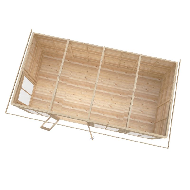 Elevate your garden with the Shire Lela 16x8 Summerhouse, a spacious and stylish wooden retreat offering a blend of elegance and practicality for larger gardens. Crafted from premium 12mm thick interlocking shiplap timber and robust 34x34mm framing, it ensures excellent structural strength and weather protection. The summerhouse features double doors with a secure mortice lock and four acrylic windows for ample natural light, creating an open and spacious interior. Both the roof and floor are made from 12mm matching materials, and all windows and doors are built with traditional mortise and tenon joinery for superior strength. For your peace of mind, it is constructed entirely from pressure-treated timber and backed by a 10-year anti-rot guarantee and a 1-year manufacturer's warranty, promising enduring enjoyment and a beautiful addition to your outdoor living space.